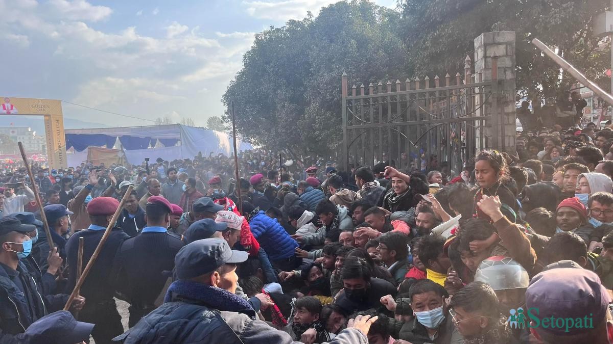 टुँडिखेलमा भीड अनियन्त्रित, तीन जना घाइते (तस्बिरहरू)