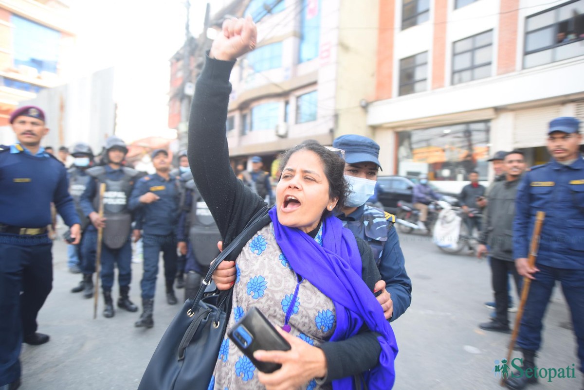 निषेधित क्षेत्रमा प्रदर्शन गरेको भन्दै प्रहरीले प्रदर्शनकारीहरूलाई नियन्त्रणमा लिएको छ।