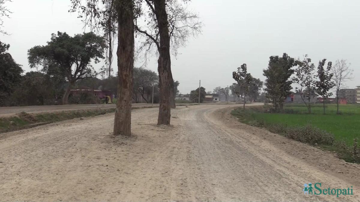 निर्माण कम्पनीले सडकमा गिट्टी, बालुवा बिछ्याएर कालोपत्रेका लागि तयारी गरेको छ। तर रूखहरू कसले कटान गर्ने भन्ने विषयमा समन्वय नहुँदा सडक अलपत्र परेको छ।