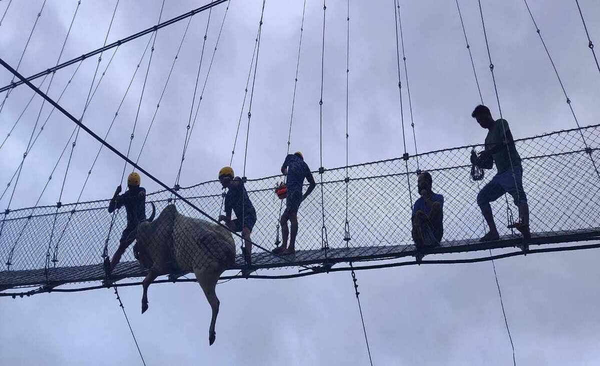 दाङको एउटा झोलुंगे पुलमा फसेको गोरूको सकुशल उद्धार गरिएको छ।