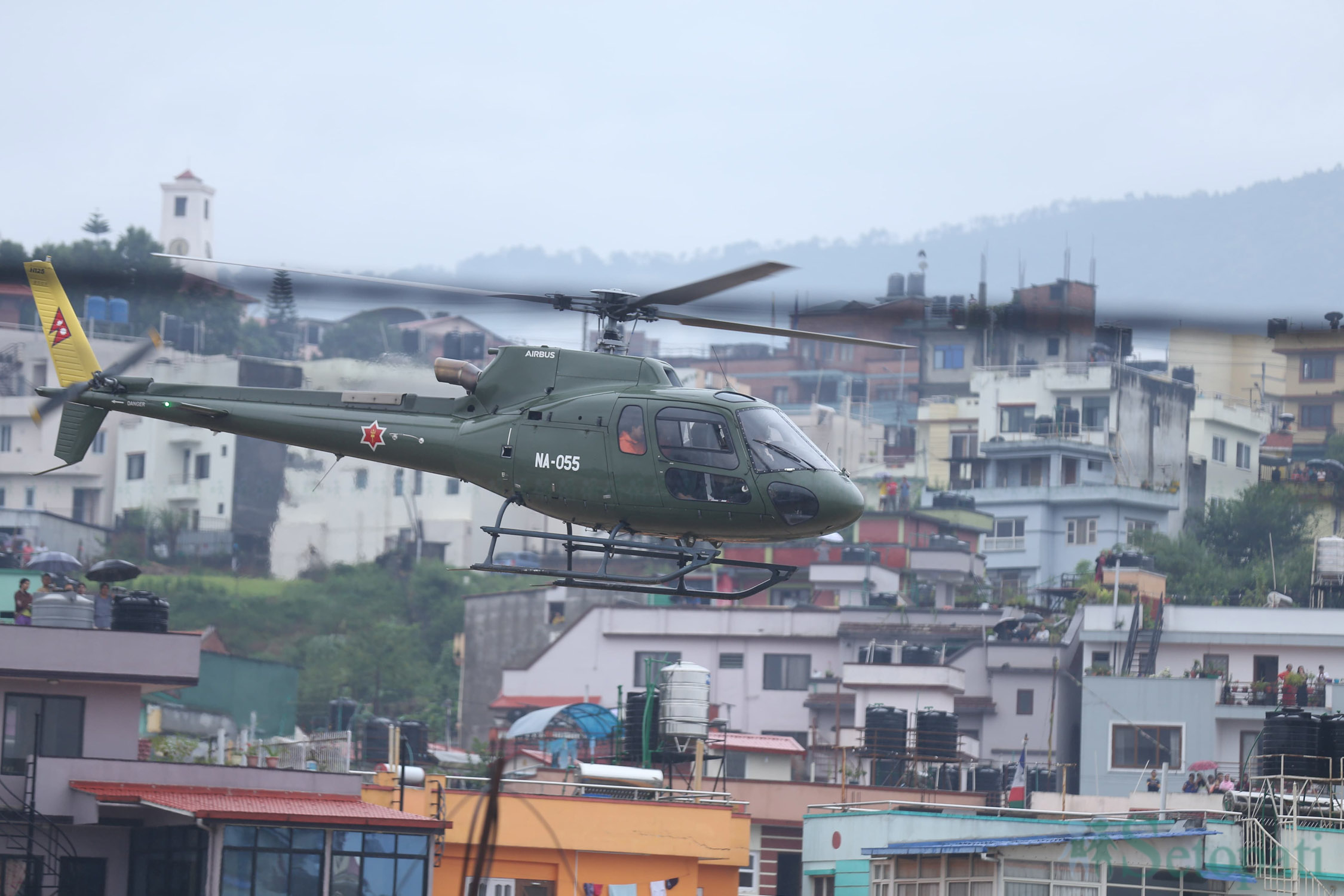 सेनाको हेलिकप्टरले शनिबार काठमाडौं उपत्यका लगायत विभिन्न प्रभावित स्थानबाट उद्धार गरेको थियो ।