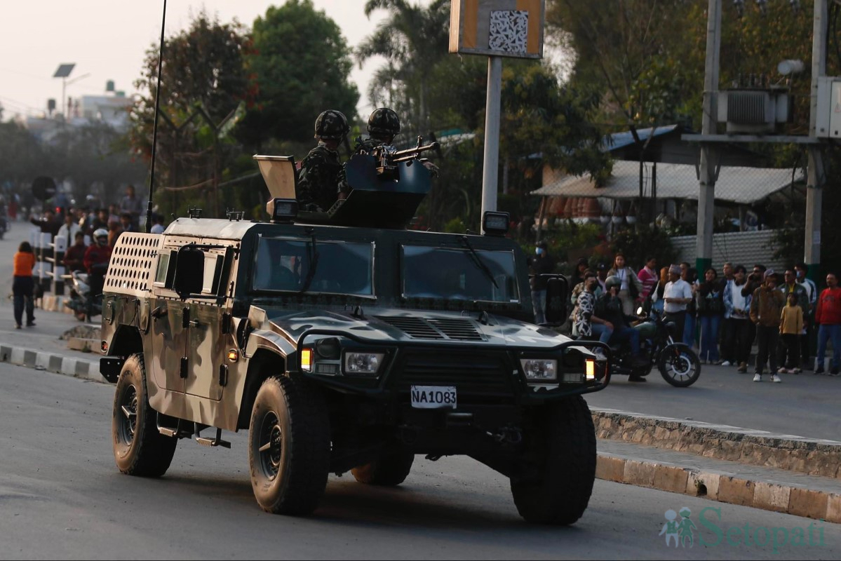 जिल्ला प्रशासन कार्यालय काठमाडौंले कर्फ्यु जारी गरेपछि नेपाली सेनाको टोली खटिएको हो।