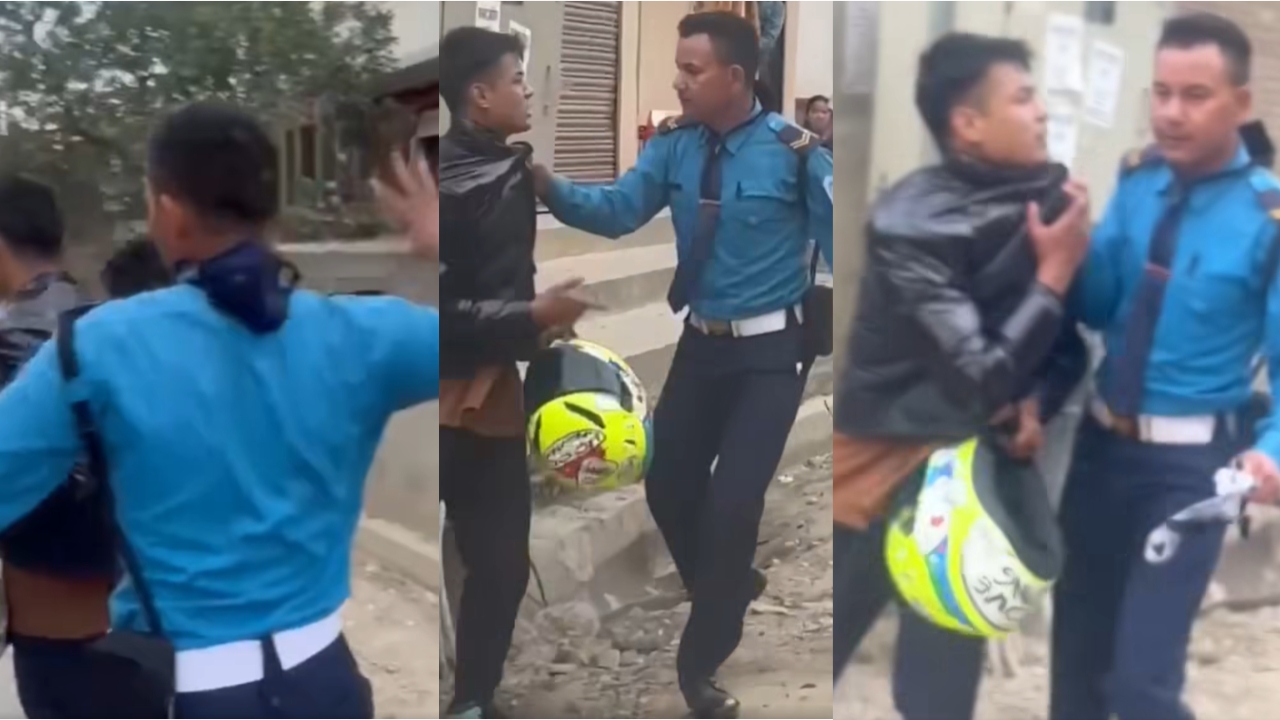 ट्राफिक प्रहरीले एक जना युवकलाई लखेटेर कुटपिट गरेको भिडिओ सामाजिक सञ्जालमा भाइरल छ।
