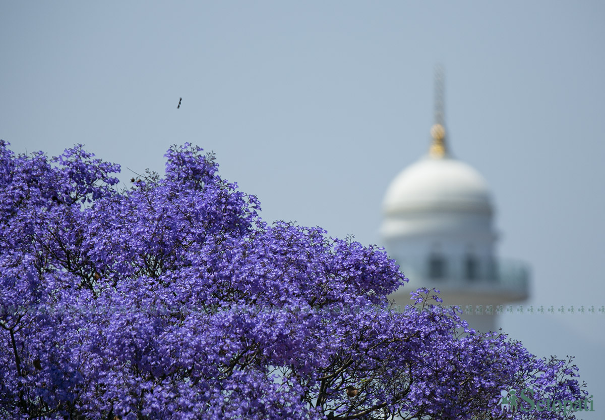 सडक किनारमा लगाइएका ज्याकराण्डका फुलहरूले काठमाडौंको दृश्य अहिले मनमोहक बनाएको छ।