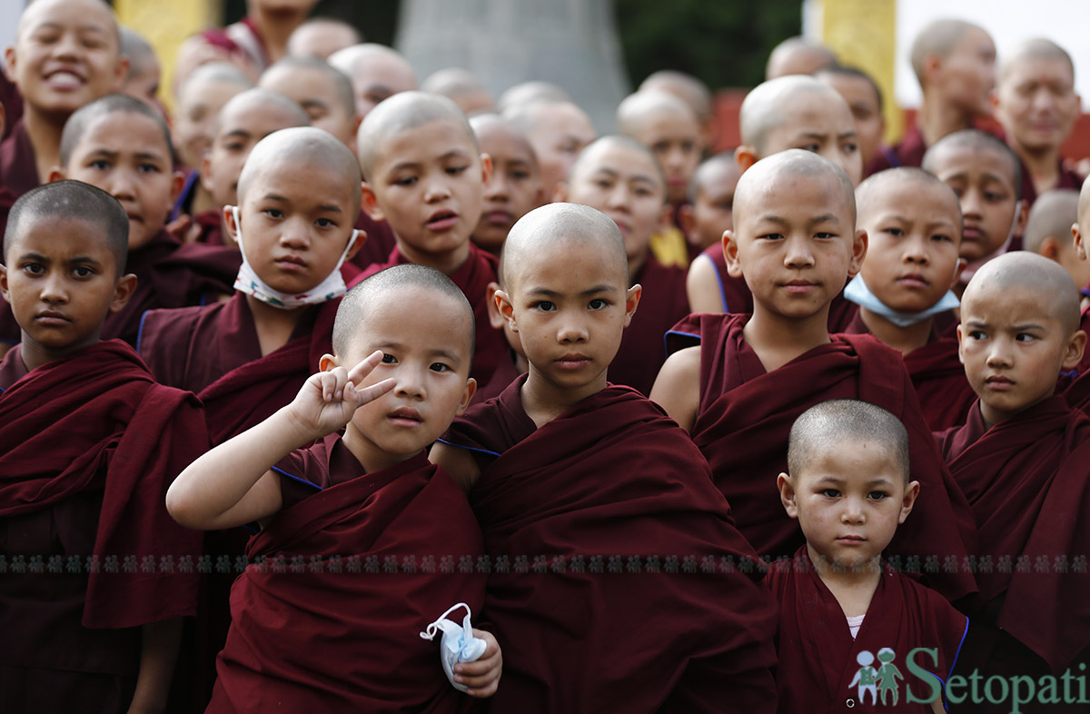 स्तुपाका वरिपरि राखिएका माने घुमाउँदै धर्ममा समर्पित अनुहार देखिन्छन् भने कतिपय श्रद्धालुहरू आफ्ना प्रियजनको नाममा बत्ति बाल्दै शान्तिको कामना गरिरहेको देख्न सकिन्छ।