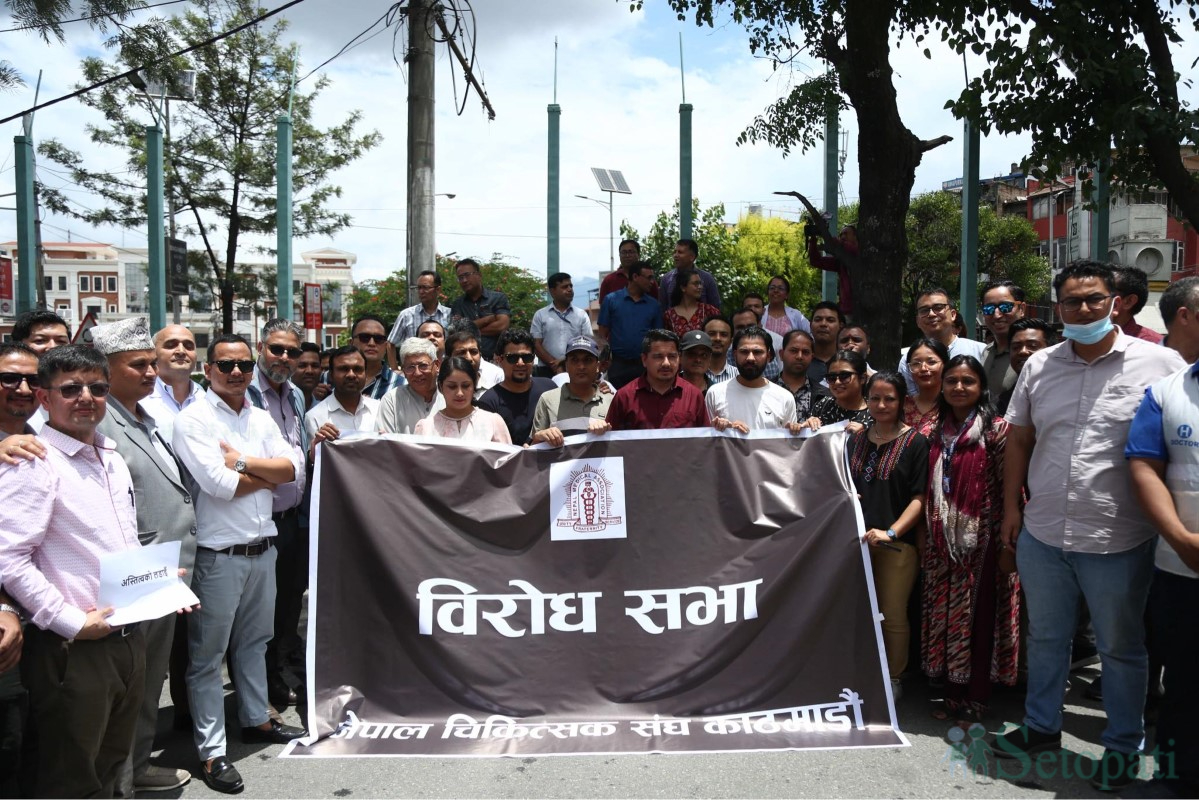 चिकित्सकहरूले मंगलबार काठमाडौंको माइतीघरमा प्रदर्शन गरेका छन्।