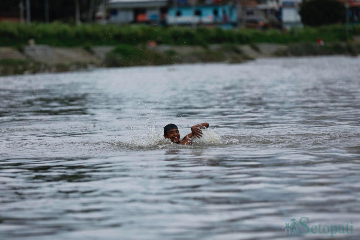 गर्मी छल्न पौडीमा रमाउँदै बालबालिका