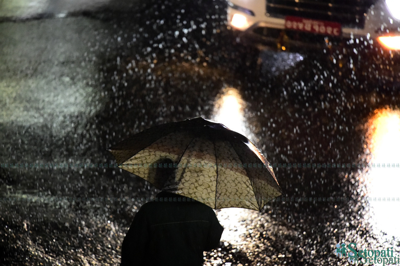 आज राति कोशी र मधेस प्रदेश प्रदेशलगायत बाँकी प्रदेशका पहाडी भू–भागमा साधारणतया बदली रही बाँकी भू–भागमा आंशिक बदली रहनेछ। मधेस, कोशी प्रदेशको पहाडी तथा तराई भू–भागलगायत बाँकी प्रदेशको पहाडी भू–भागका थोरै स्थानहरूमा र बाँकी तराई भू–भागका एक–दुई स्थानमा मध्यम वर्षाको सम्भावना रहेको छ। कोशी प्रदेशको तराई भू–भाग तथा बाग्मती र गण्डकी प्रदेशका पहाडी भू–भागका एक–दुई स्थानमा भारी वर्षाको सम्भावना छ।