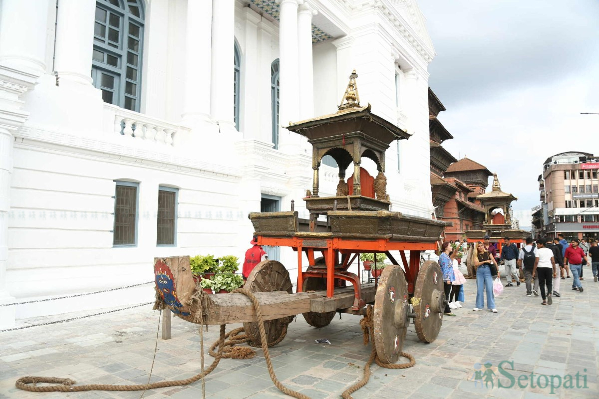 ८ दिनसम्म मनाइने जात्राका लागि गद्दी बैठक सजाउनेदेखि रथ निर्माणको काम तीव्र गतिमा भइरहेको छ।