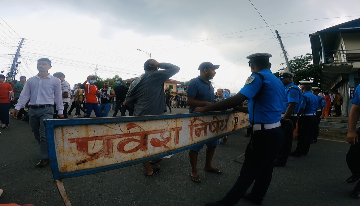 कार्यालयको मूल गेटमा ठूलो संख्यामा हतियारधारी प्रहरीहरू उभिएका थिए। उनीहरू बेला बेला अश्रु ग्यास र हवाइ फायरका लागि 'पोजिसन' लिएजस्तो पनि गर्थे। तैपनि केही प्रदर्शनकारी पानीको बोतलले प्रहरी कार्यालयभित्र हान्दै थिए।