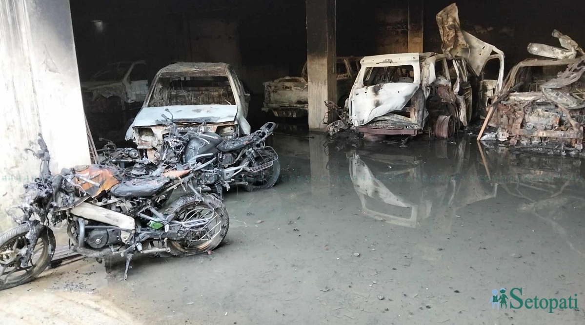 पाँच वटा गाडी सरकारी, एउटा गाडी उपमहानगरपालिकाको लिफ्ट मर्मतका लागि आएको निजी गाडी हो। जलेका सवारी साधनमध्ये ६ वटा व्यक्तिका निजी गाडी हुन्—चार वटा कर्मचारीका मोटरसाइकल र दुई वटा सर्वसाधारणका मोटरसाइकल छन्।
