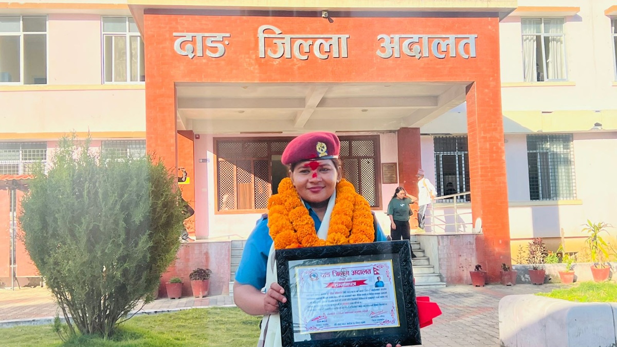 उनै संगीतालाई बिहीबार जिल्ला अदालतले उनको अथक प्रयासको कदर गर्दै पाँच हजार रूपैयाँ नगद र कदरपत्रसहित सम्मान गरेको छ।