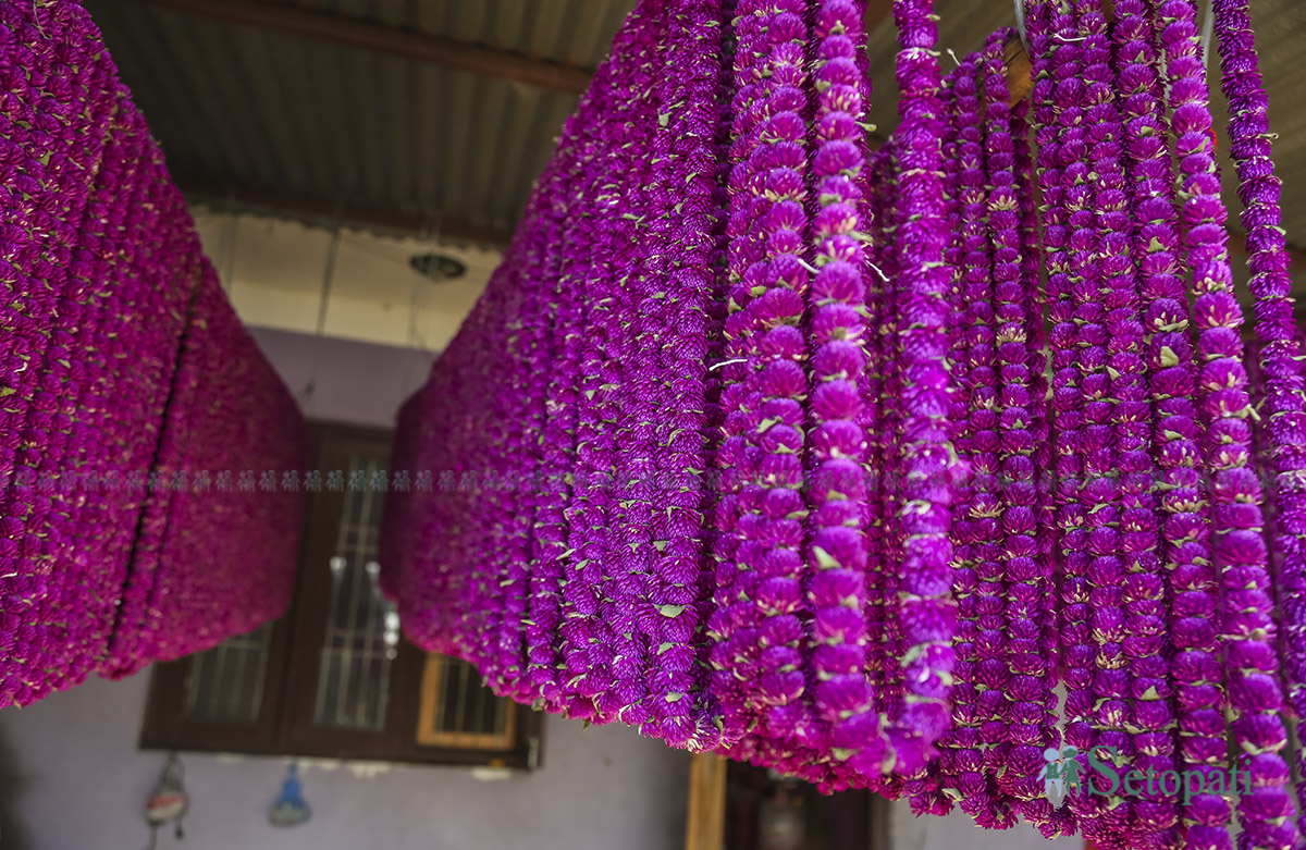 घरमै माला किन्न आउनेहरूलाई एउटा माला तीस रूपैयाँमै बिक्री गरिने एक किसानले बताइन्।