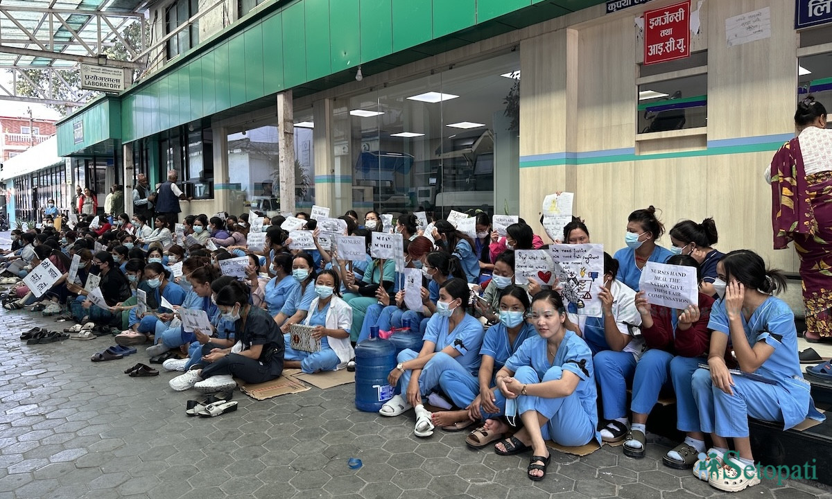 आन्दोलनमा ओर्लिएका नर्सहरू कहिले प्लाकार्ड बोकेर मौन बस्छन् त कहिले नाराबाजी गर्छन्। उनीहरू आफ्नो यो आन्दोलनलाई न्याय र आत्मसम्मानको आन्दोलन ठान्छन्। र, माग पूरा नहुँदासम्म पछि नहट्ने अठोट गरेका छन्।