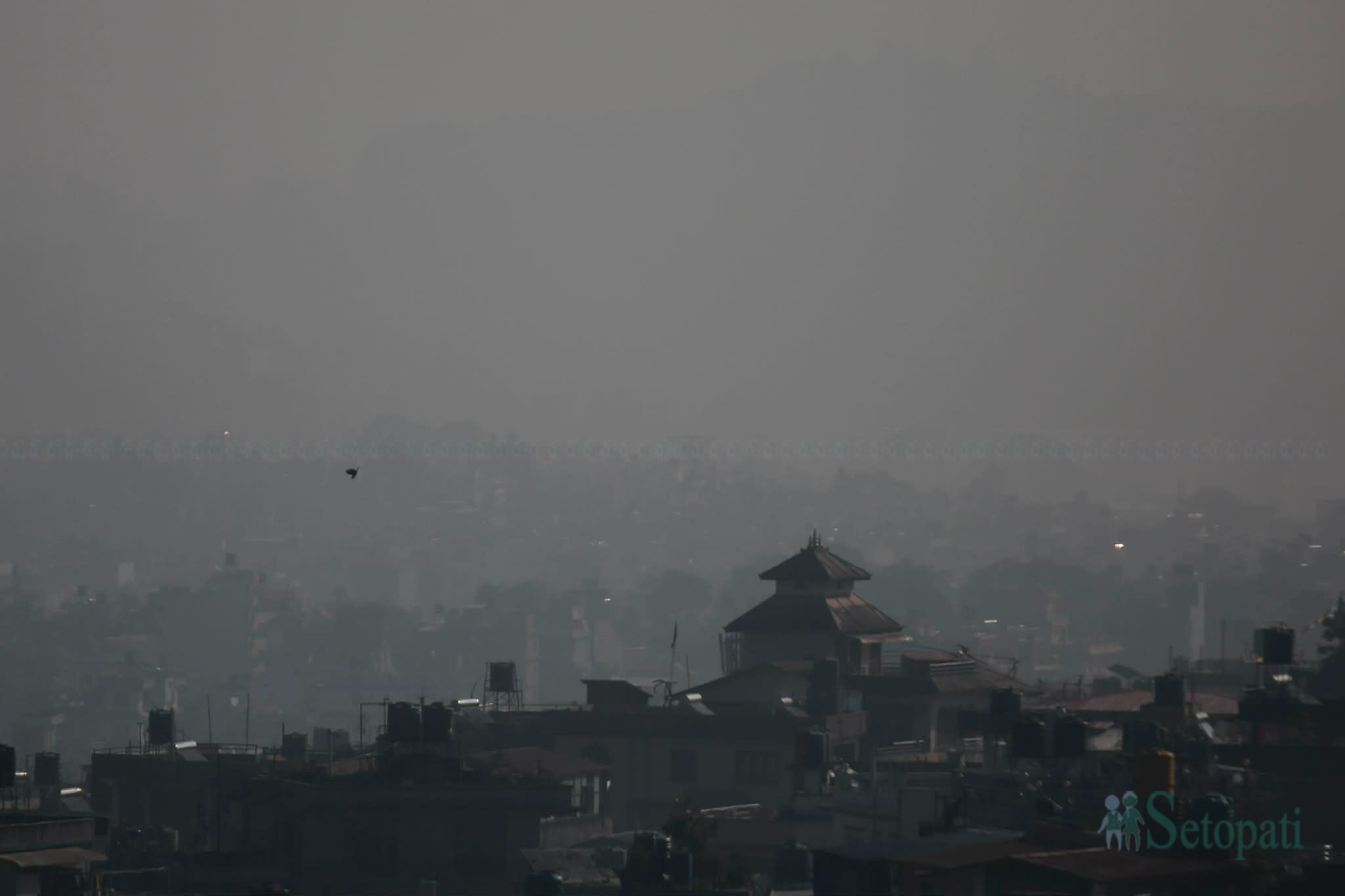 काठमाडौंमा लाग्ने शीतकालीन हुस्सुको घुम्टो रातारात ठडिएका ठूला महलले मात्रै विस्थापित गराइदिएन। धुवाँ, धूलोले पनि निलिदियो।