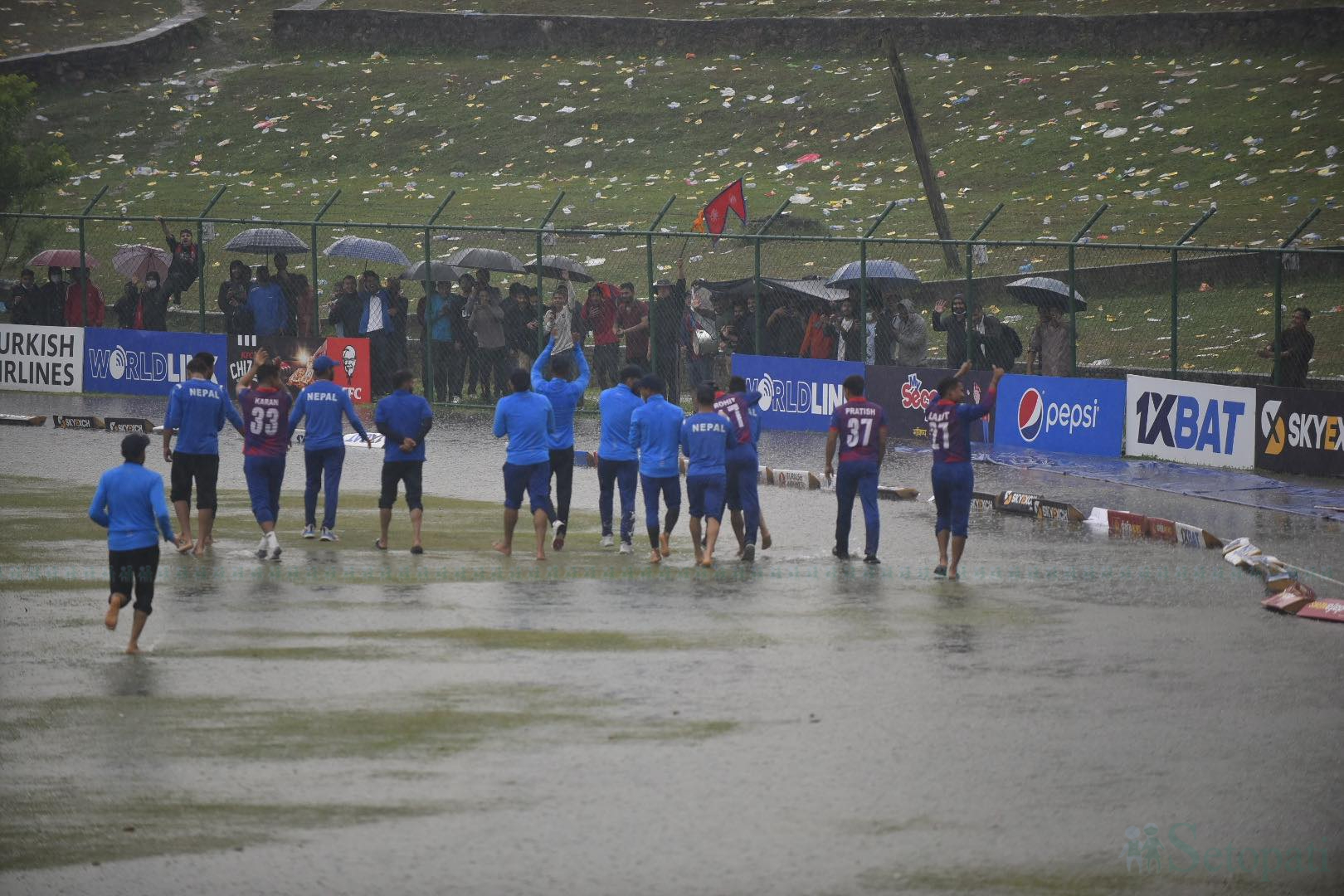 डिएलएस मेथड लागू गर्न २० ओभर खेलेको हुनु पर्ने तथा सुपर ओभर पनि गर्न सम्भव नभएपछि समूह चरणमा शीर्ष भएको आधारमा नेपालले विजयी हुँदै फाइनलमा प्रवेश गरेको हो।
