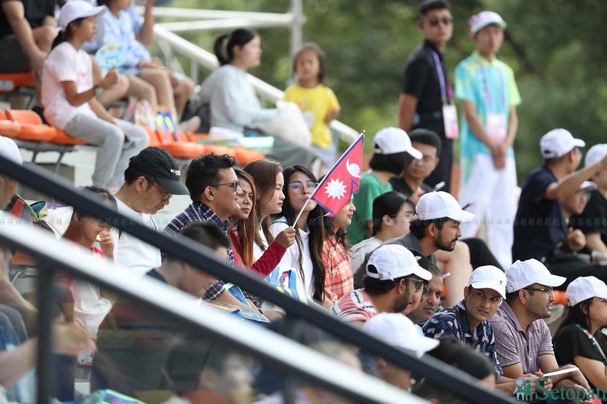 आइतबार बिहान चीनको हाङझाउस्थित झेजियाङ युनिभर्सिटी अफ टेक्नोलोजी पिङफेङ क्रिकेट मैदानमा नेपाल र माल्दिभ्सबीचको खेल चलिरहेको थियो। विश्वविद्यालयको मैदानको पूर्वतर्फको प्यारापिट भरिएको थियो। यति धेरै चिनियाँ समर्थक देखेपछि हामी छक्क पर्यौं।