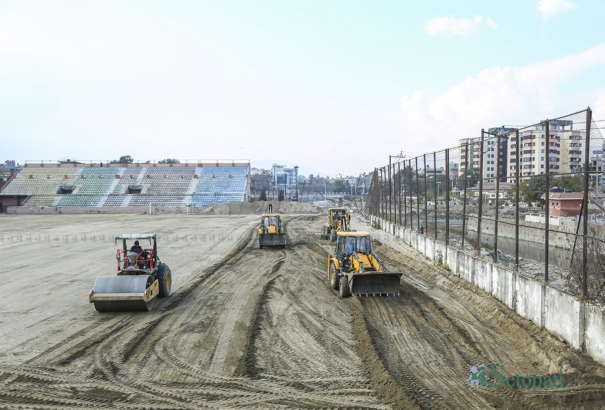 एक हप्तादेखि ललितपुर महानगरपालिका वडा नम्बर ९ ले दिएको एउटा डोजर र क्लबले व्यवस्था गरेको ३ वटा डोजर लगाएर सरसफाइ गरेको र अबको २ महिनाभित्र रंगशाला पुन: प्रयोगमा ल्याइने अध्यक्ष ब्यञ्जनकारले सेतोपाटीलाई जानकारी दिए।