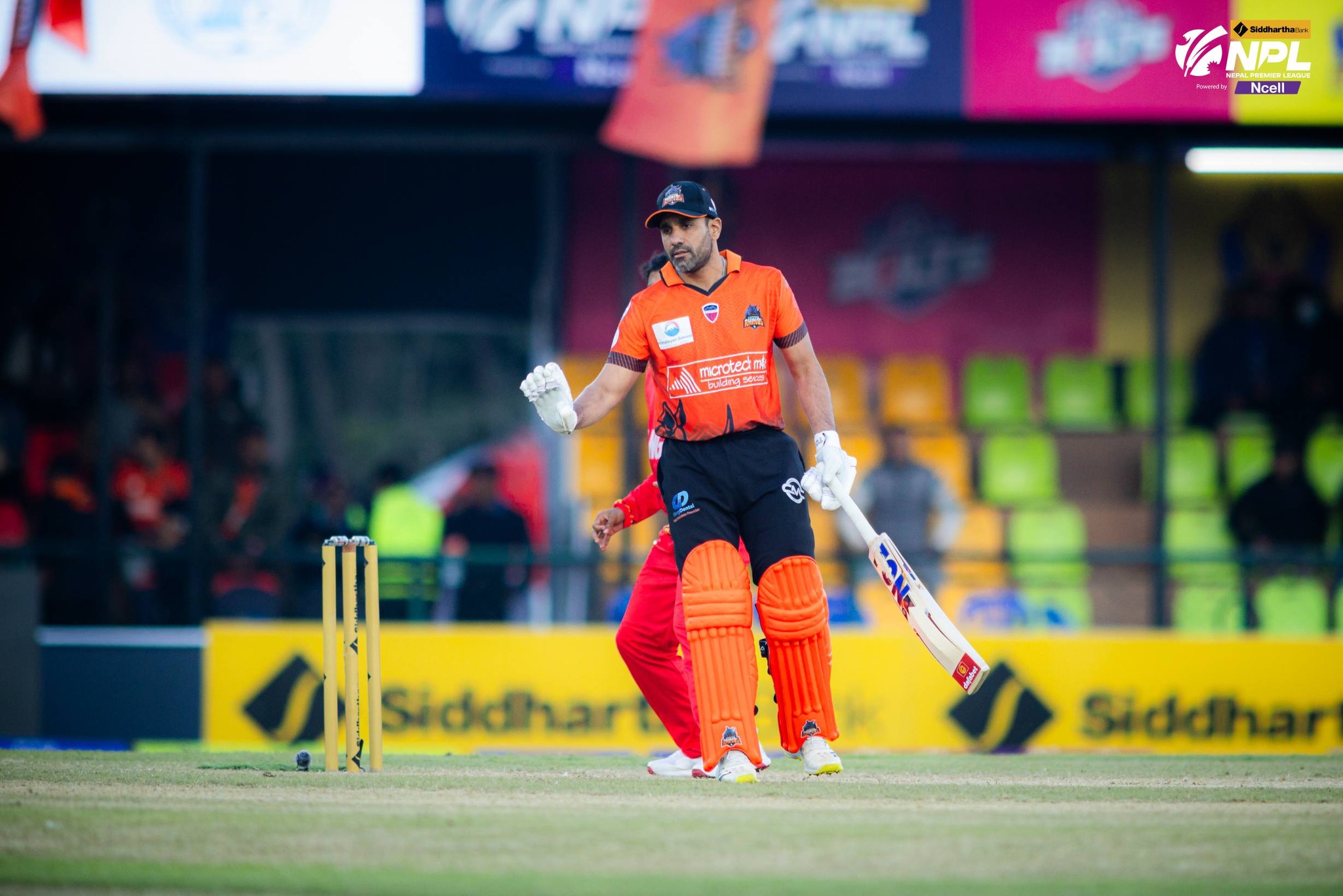त्यसअघि चितवनका ओपनिङ ब्याटर डविन मलान शून्यमा आउट भएका थिए। उनी इनिङग्सको दोस्रो बलमै लुम्बिनीका नामिबियन तीव्र गतिका बलर रुबेन ट्रम्पलम्यानबाट बोल्ड भएका थिए।