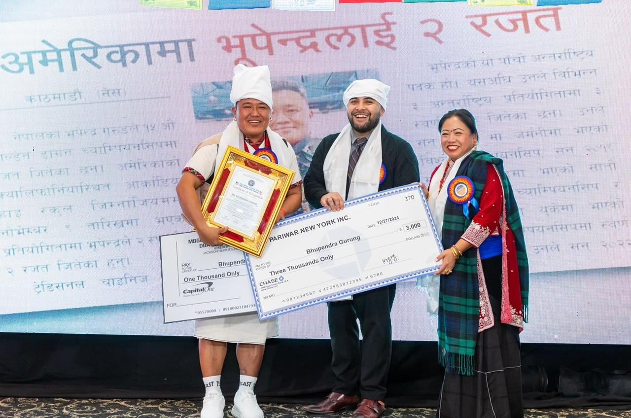कार्यक्रमका प्रमुख अथिति न्युयोर्क एसेम्बली मेम्बर जिल्ला ३० का स्टेभेन राघ र तमु परिवार न्युयोर्क इन्ककी अध्यक्ष मनीतादेवी गुरुङले भूपेन्द्रलाई नगदसहित अवार्ड प्रदान गरे।