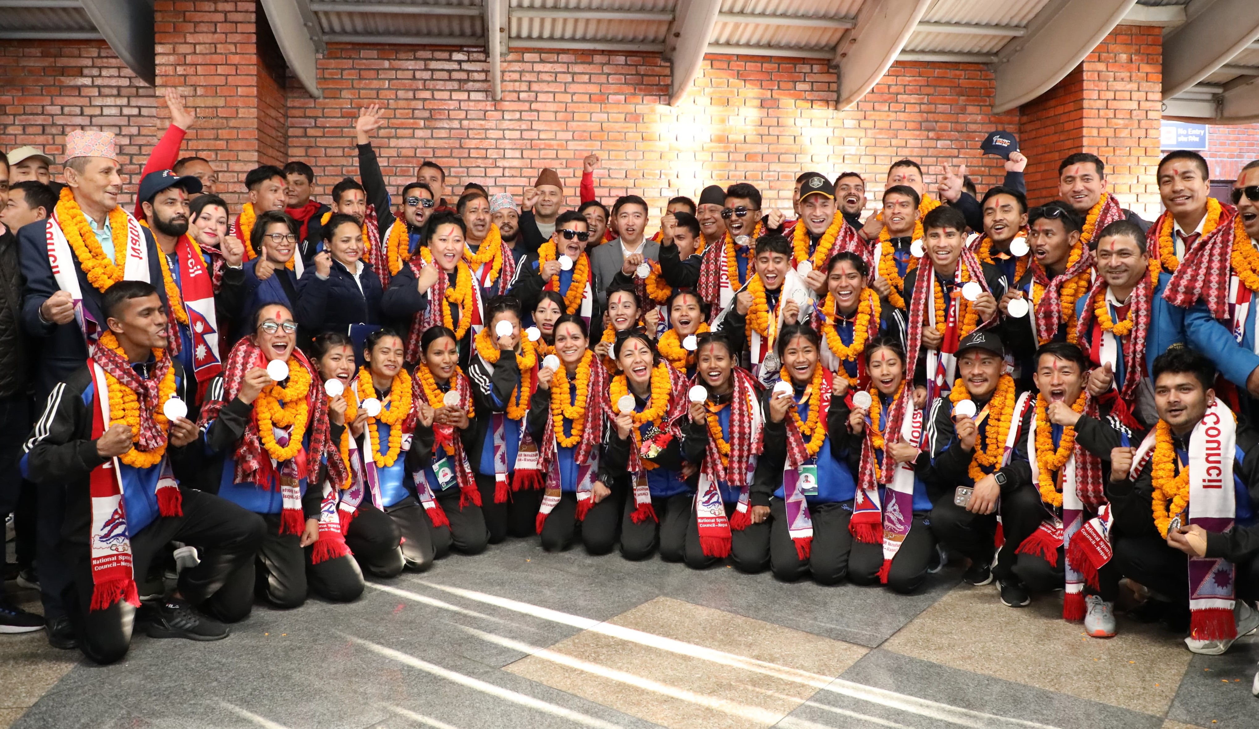 राष्ट्रिय खेलकुद परिषद् (राखेप) ले प्रथम खो खो विश्व कपका ऐतिहासिक पदक विजेता खेलाडीसहितको टोलीलाई सोमबार त्रिभूवन अन्तर्राष्ट्रिय विमानस्थलमा स्वागत गरेको छ ।