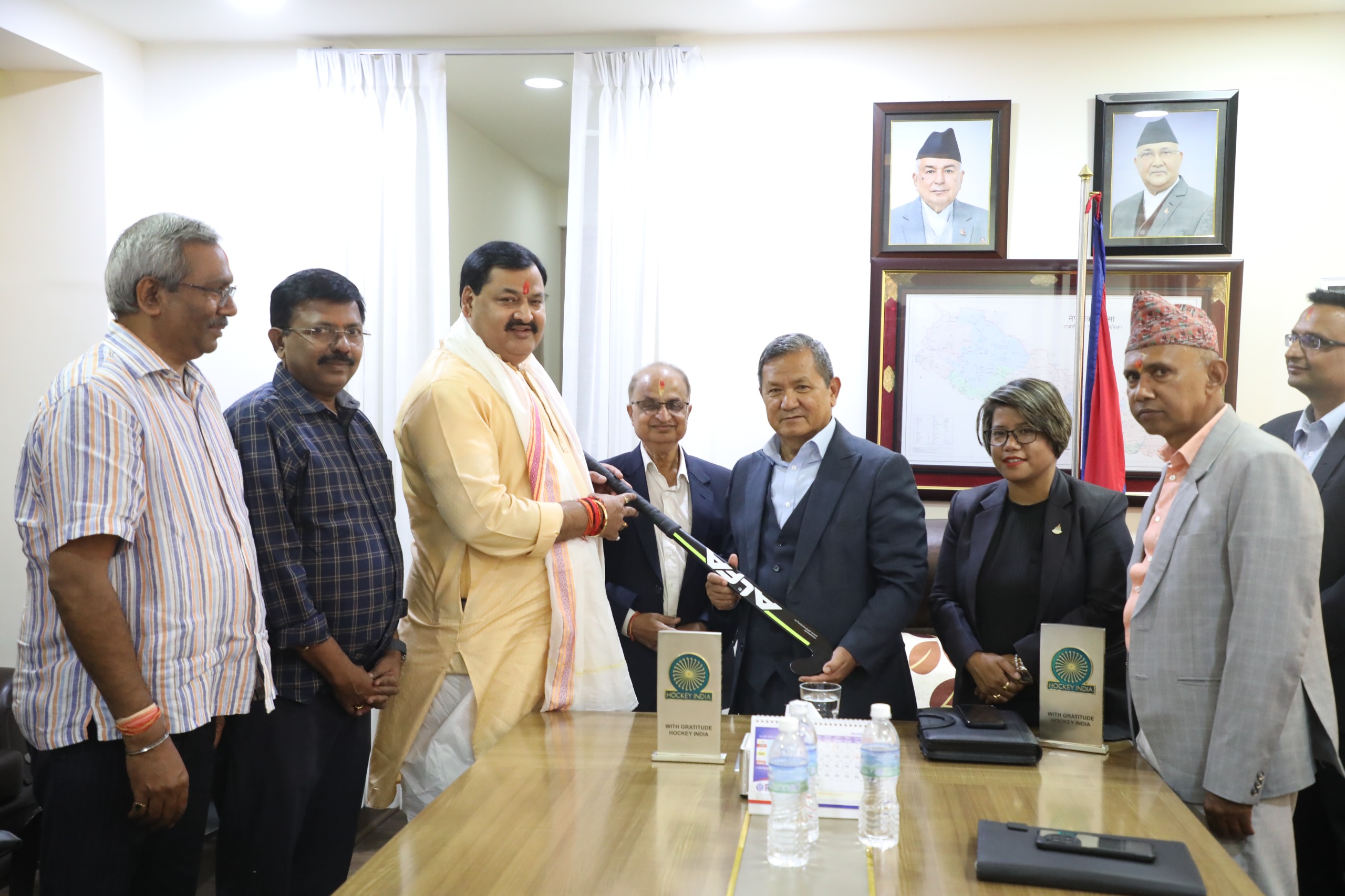एसियाली हक्की महासंघका उपाध्यक्ष एवं भारतीय हक्की संघका महासचिव भोलानाथ सिंह, भारतीय हक्की संघका कोषाध्यक्ष सेकर मनोहरण र भारतीय हक्की संघका प्रबन्ध निर्देशक रविकान्त श्रीवास्तवसहित बिहीबार नेपाल आएको टोलीले सामाग्री हस्तान्तरण गर्यो।