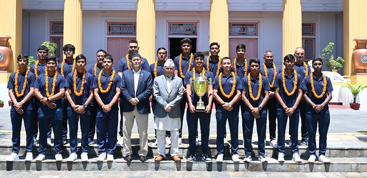 एसीसी यू – १६ इस्ट जोन कप क्रिकेट प्रतियोगिताको विजेता नेपाली टोलीलाई सोमबार शीतल निवासमा बधाई दिँदै उनले क्रिकेटमा नेपालीले हात पारेको सफलता खेलाडीहरूको खेलप्रतिको समर्पण, लगाव र मेहनतको प्रतिफल भएको उल्लेख गरेका हुन्।